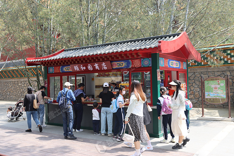 捷士通作為移動房屋廠家,為北京頤和園生產(chǎn)了一款與景色相互照應(yīng)的售賣崗?fù)ぃ宫F(xiàn)出獨特的魅力