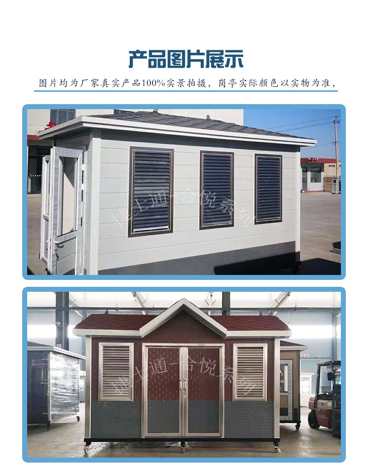 生產(chǎn)線包含:設備房、收費崗亭、高端崗亭、警務崗亭、售貨亭、移動廁所、智能吸煙亭、智能安檢亭、大型移動辦公室、大型設備房等。