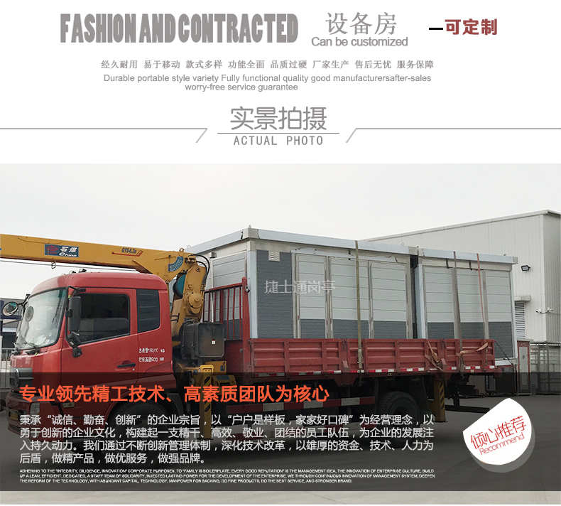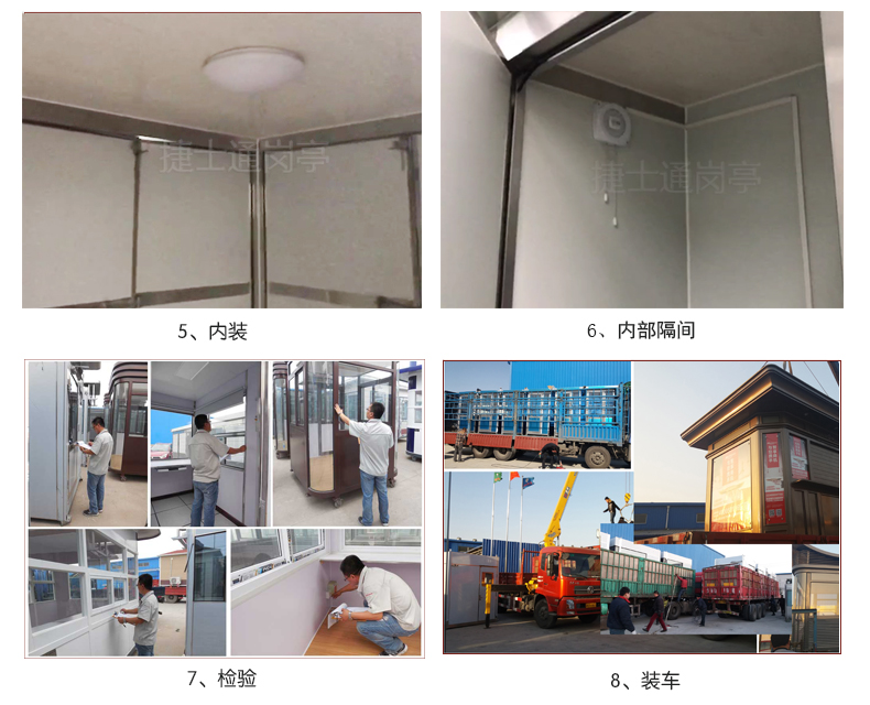 【內(nèi)吊頂】:豪華PVC扣板【外 頂】:1.2mm鍍鋅板焊接,SBS瀝青防水卷材、瀝青瓦