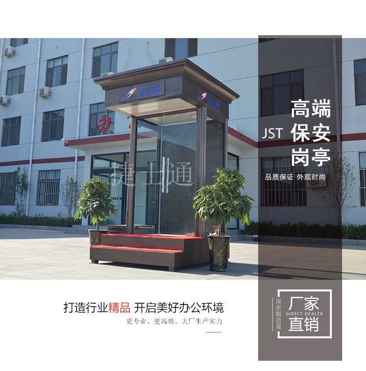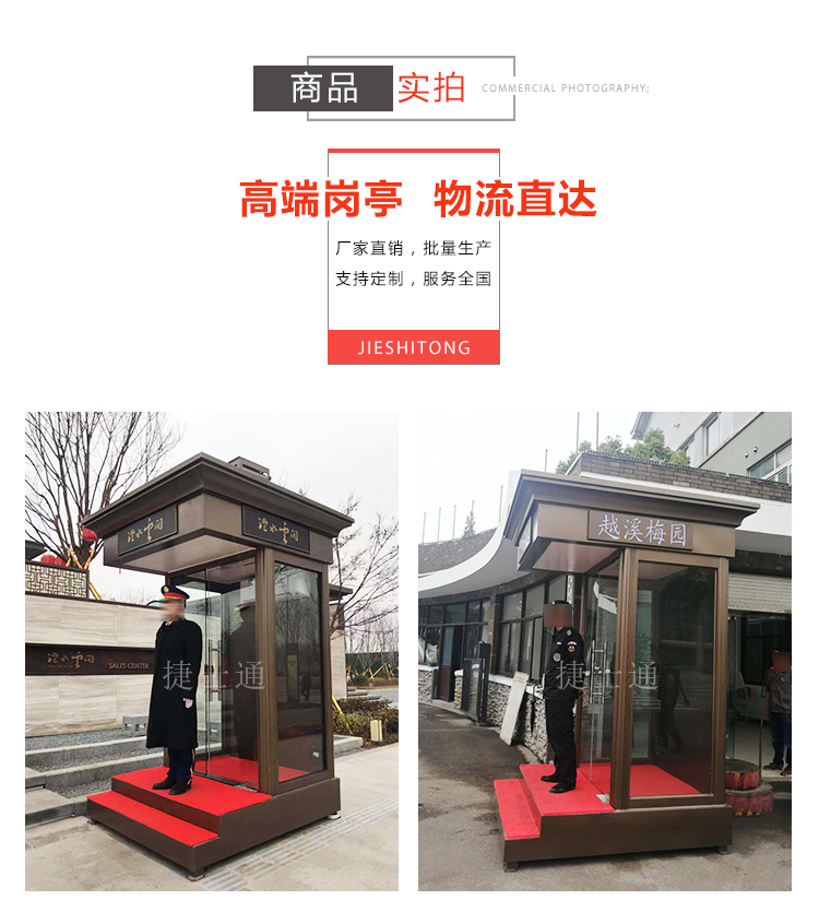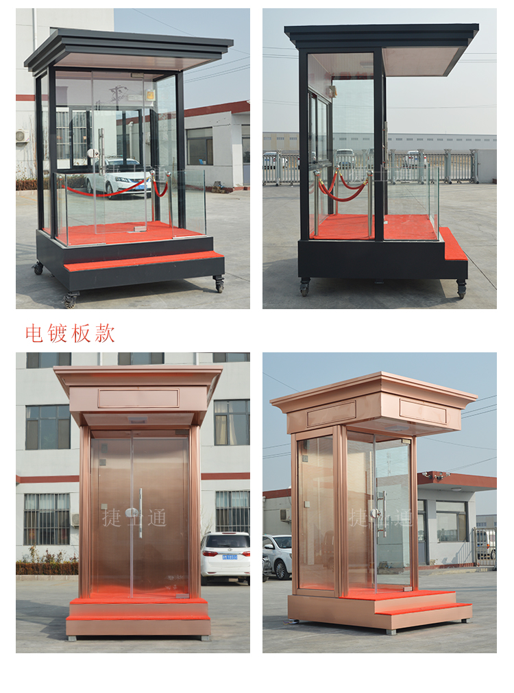 天津捷士通可定制各種規(guī)格崗亭,有保安站崗亭、警務崗亭、吸煙亭、設備房、大型可移動房屋、景區(qū)售貨亭、售賣車等
