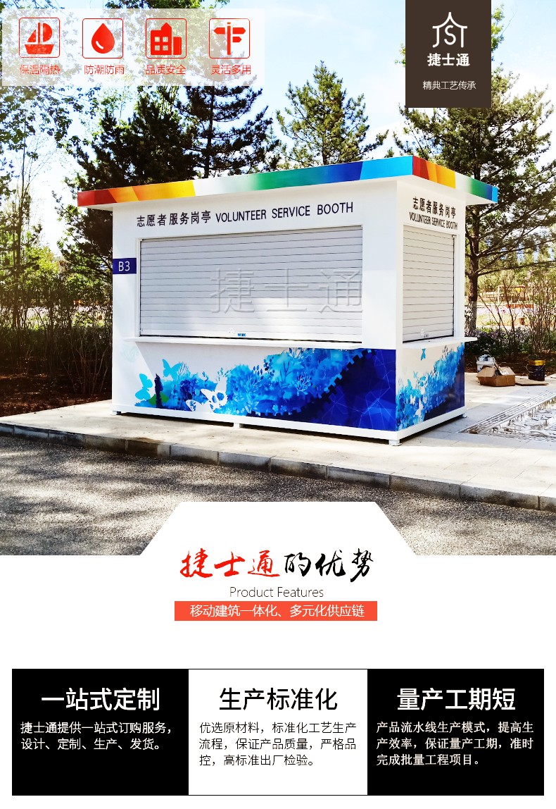 天津捷士通便民志愿服務(wù)亭系列,便民志愿服務(wù)亭能方便市民,進行交通指路咨詢,城市治安維護,街頭售貨及書報等;便民服務(wù)亭的啟用保證市民及外來游客能得到zui大的方便及城市貼心的服務(wù);配置有工作臺、柜子,顯示屏,網(wǎng)絡(luò),監(jiān)控,空調(diào)等;可為市民提供設(shè)施有雨傘,醫(yī)藥箱,嬰兒車,打氣筒,代繳水電費及代收快件,飲水機等。;便民服務(wù)亭是一個城市對外的窗口,也是一個城市的名片。常規(guī)案例尺寸:長3.0米,寬2.5米,高2.9米,其他尺寸都是可以定制的。聯(lián)系電話:15822882616,公司網(wǎng)址:m.eersys.com。
