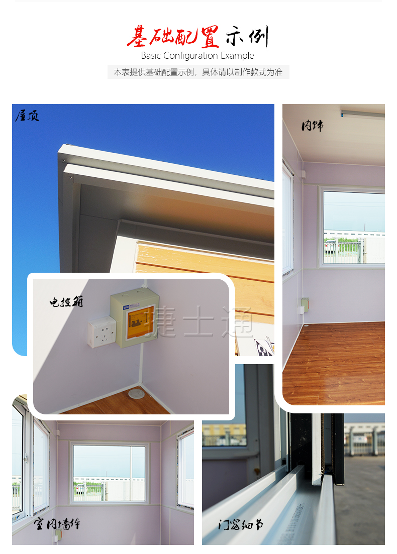 其他標(biāo)準(zhǔn)配置:墻體含保溫材料,外墻浮法玻璃,屋頂鍍鋅板靜電噴涂,PVC吊頂,地板可定做防滑鋁板/復(fù)合木地板,墻體玻璃材質(zhì):鋼化、中空、有色玻璃等可定做,電箱、開關(guān)、插座、暗敷電線、照明燈、桌面、抽屜、鍵盤托、空調(diào)架等。聯(lián)系電話:15822882616,公司網(wǎng)址:m.eersys.com