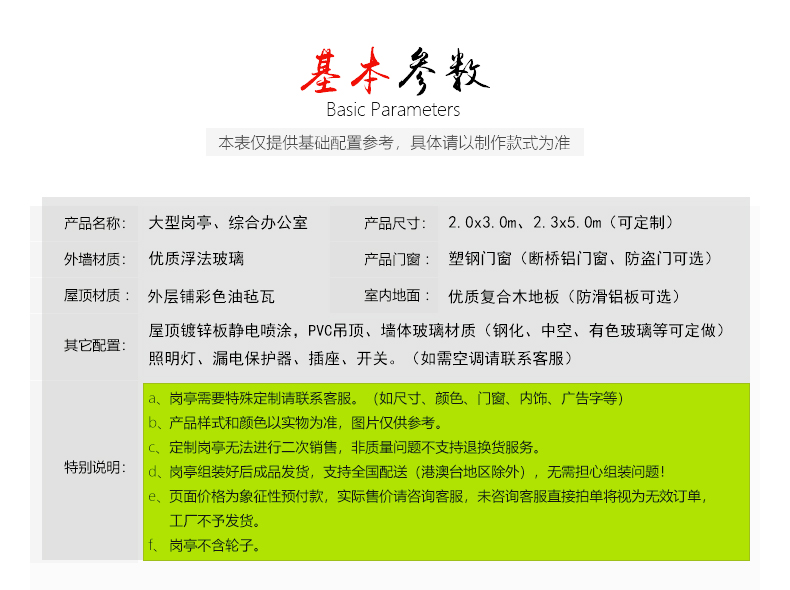 | 類型 | 移動辦公室 | 顏色 | 可定做 | 運輸方式 | 公路運輸 | ||